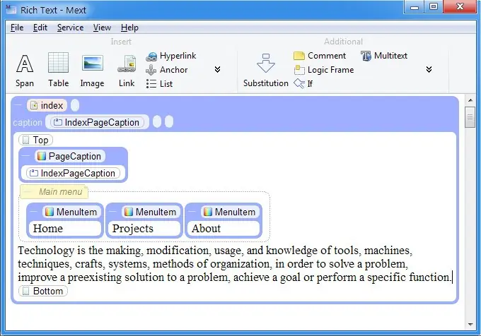 Mext представляет собой специализированный текстовый редактор, разработанный для тех, кто работает с документацией, требующей чёткого соответствия элементов определённым стилям. В отличие от визуальных редакторов, он не показывает конечный вид документа в процессе редактирования, но обеспечивает высокую степень контроля над структурой. Это делает его особенно полезным при создании справочной информации к программным продуктам, технических описаний и веб-контента.
