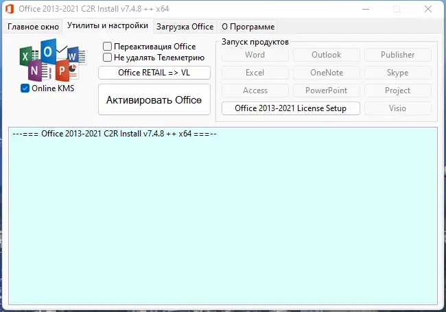 - Поддержка установки Microsoft Office с 2013 по 2021 год выпуска