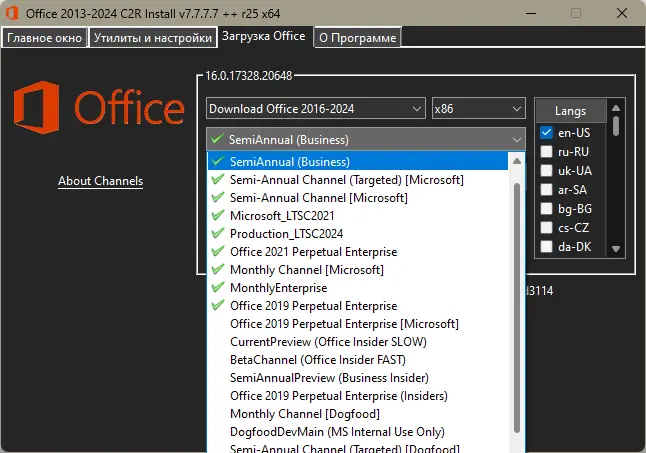 - Поддержка установки Microsoft Office с 2013 по 2021 версию включительно