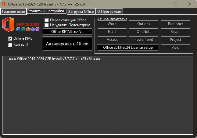 - Полная поддержка установки и активации ms Office с 2013 по 2021 год