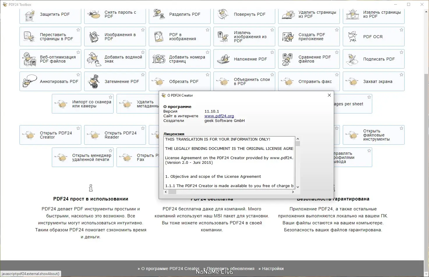 PDF24 Creator — это мощный инструмент для создания, редактирования и управления PDF-документами, который работает как виртуальный принтер и позволяет конвертировать файлы из множества форматов. Программа поддерживает изображения и документы, обеспечивает защиту, объединение и разделение файлов, а также включает функции аннотирования и захвата экрана. Решение ориентировано на пользователей, которым нужен надёжный и простой способ работы с PDF без необходимости приобретать дорогостоящее ПО.