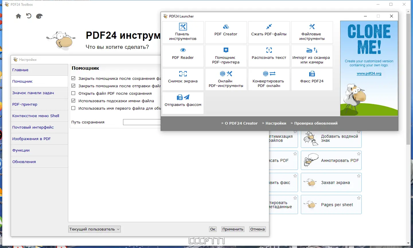 PDF24 Creator — это универсальный инструмент для создания, редактирования и обработки PDF-документов, работающий через виртуальный принтер. Программа поддерживает преобразование графических файлов и документов из различных форматов, включая изображения и текстовые файлы, в стандарт PDF. Она предлагает широкий набор функций для управления документами: объединение, разделение, защита паролем, добавление метаданных и захват экрана с последующим сохранением в PDF.