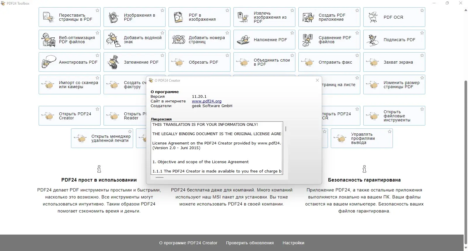 PDF24 Creator сочетает в себе простоту использования и широкий набор профессиональных функций для работы с PDF.
