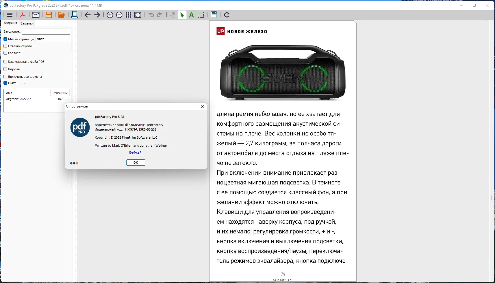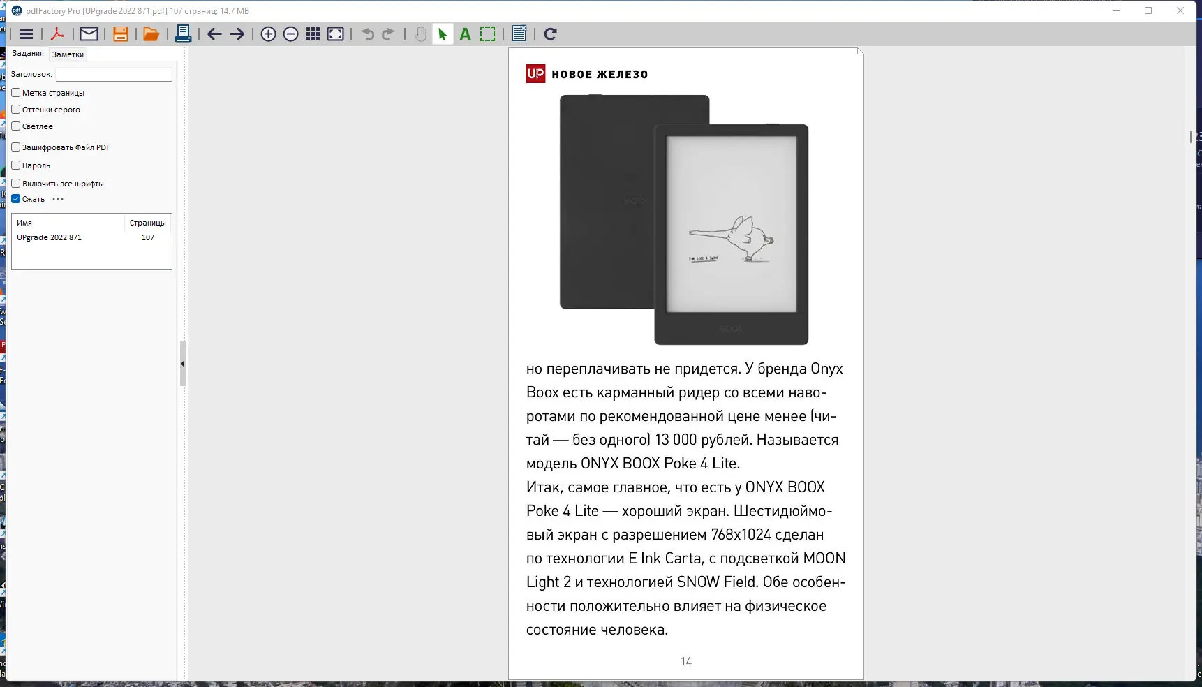 Программа сочетает в себе простоту установки и богатый функционал для профессиональной работы с PDF. Она поддерживает настройку графики, управление DPI изображений и встраивание шрифтов, что особенно важно для юридических и деловых документов. В версии pro доступны дополнительные инструменты: создание оглавления, автосохранение, настройка интерфейса и поддержка формата FP. Однако бесплатная версия имеет ограниченные возможности, а полноценный доступ требует лицензии. Несмотря на это, pdfFactory остаётся одним из самых надёжных решений в категории редакторов.