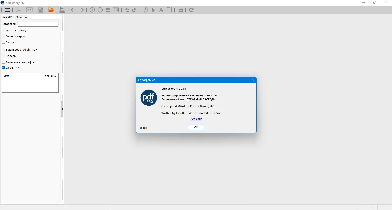 - Поддержка генерации PDF из любого приложения Windows, имеющего функцию печати.