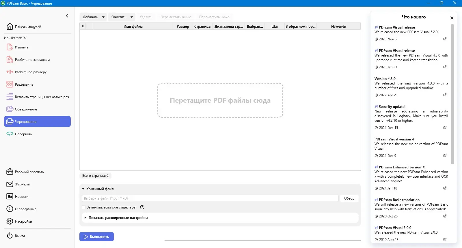 PdfSAM разработан как универсальный инструмент для обработки PDF-файлов, ориентированный на простоту и функциональность. Программа позволяет не только разделять документы на отдельные страницы или главы, но и собирать новые файлы из фрагментов разных источников. Поддержка перетаскивания страниц между документами делает процесс редактирования наглядным и точным.