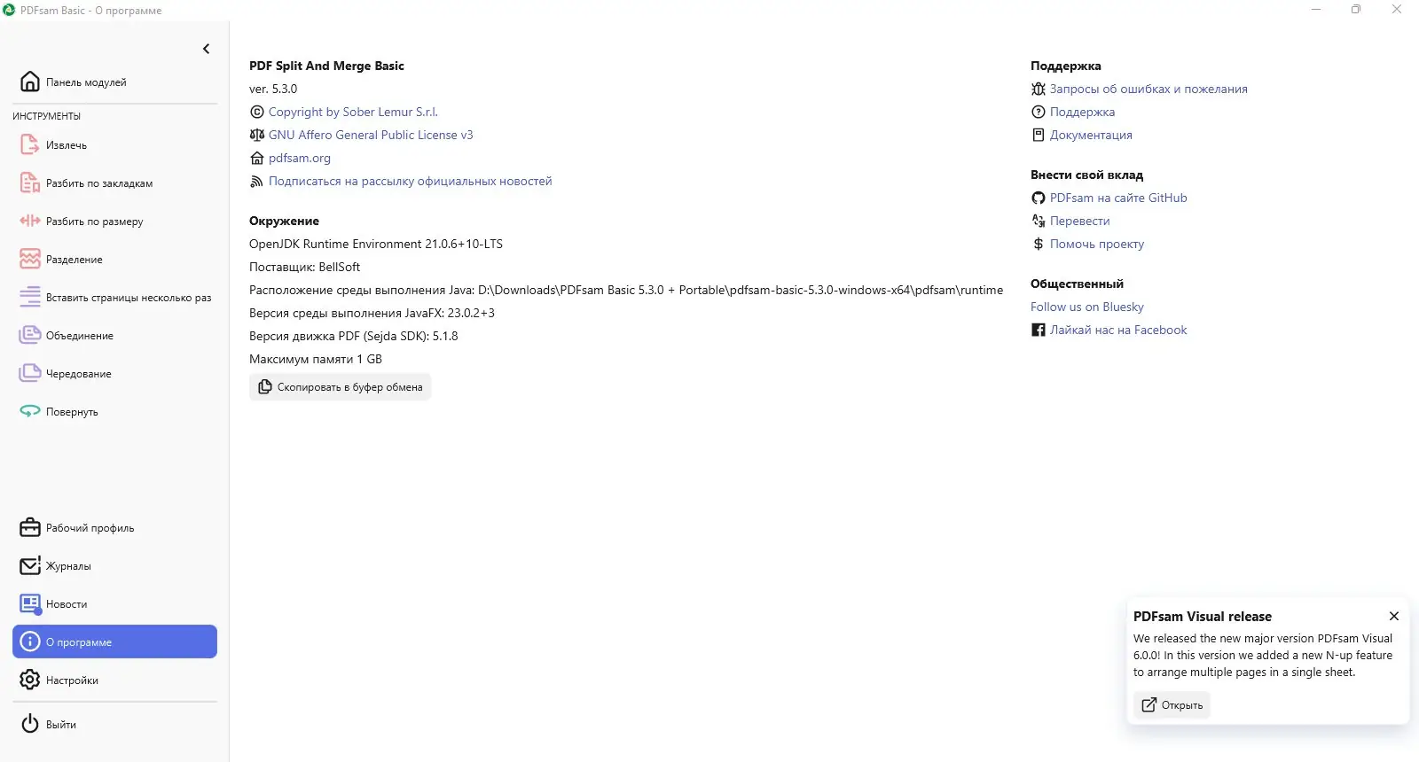 - Регулярные обновления, включая переход на JDK 21 LTS и обновлённый Sejda SDK.