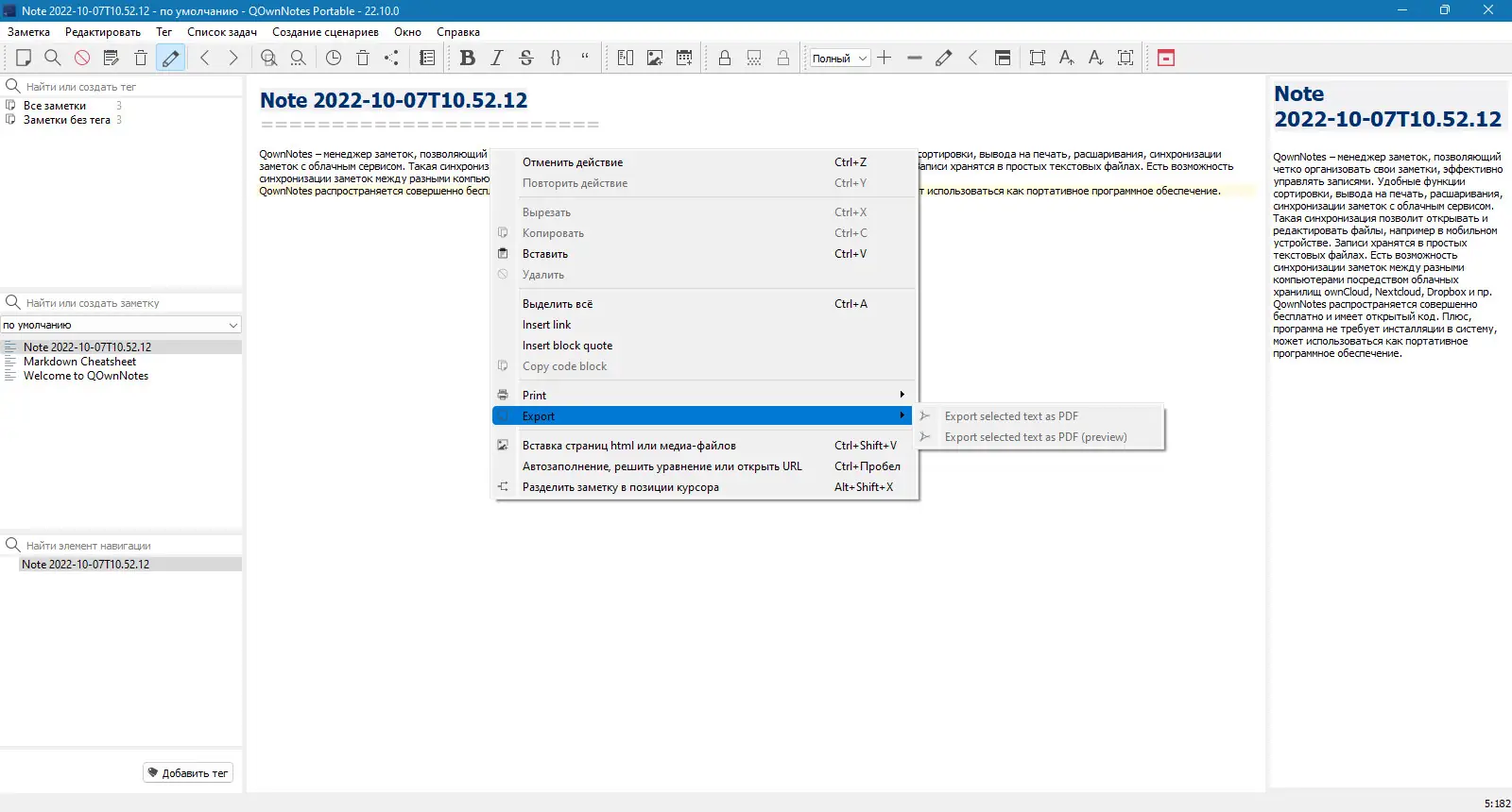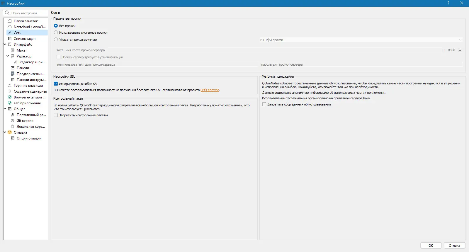 Программа не использует закрытые форматы, что гарантирует доступ к данным даже при отказе от использования QOwnNotes
