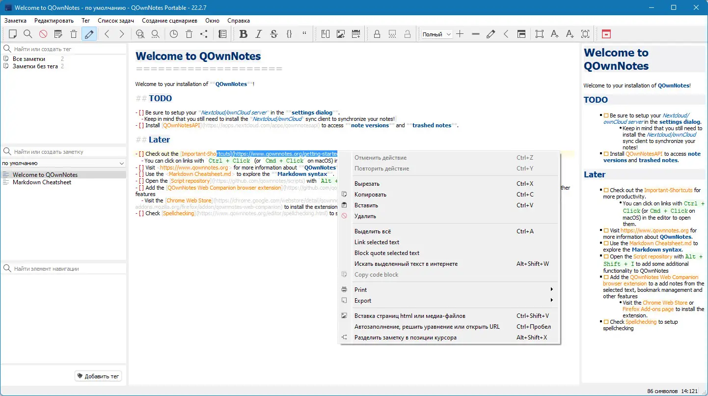Как пользоваться QOwnNotes