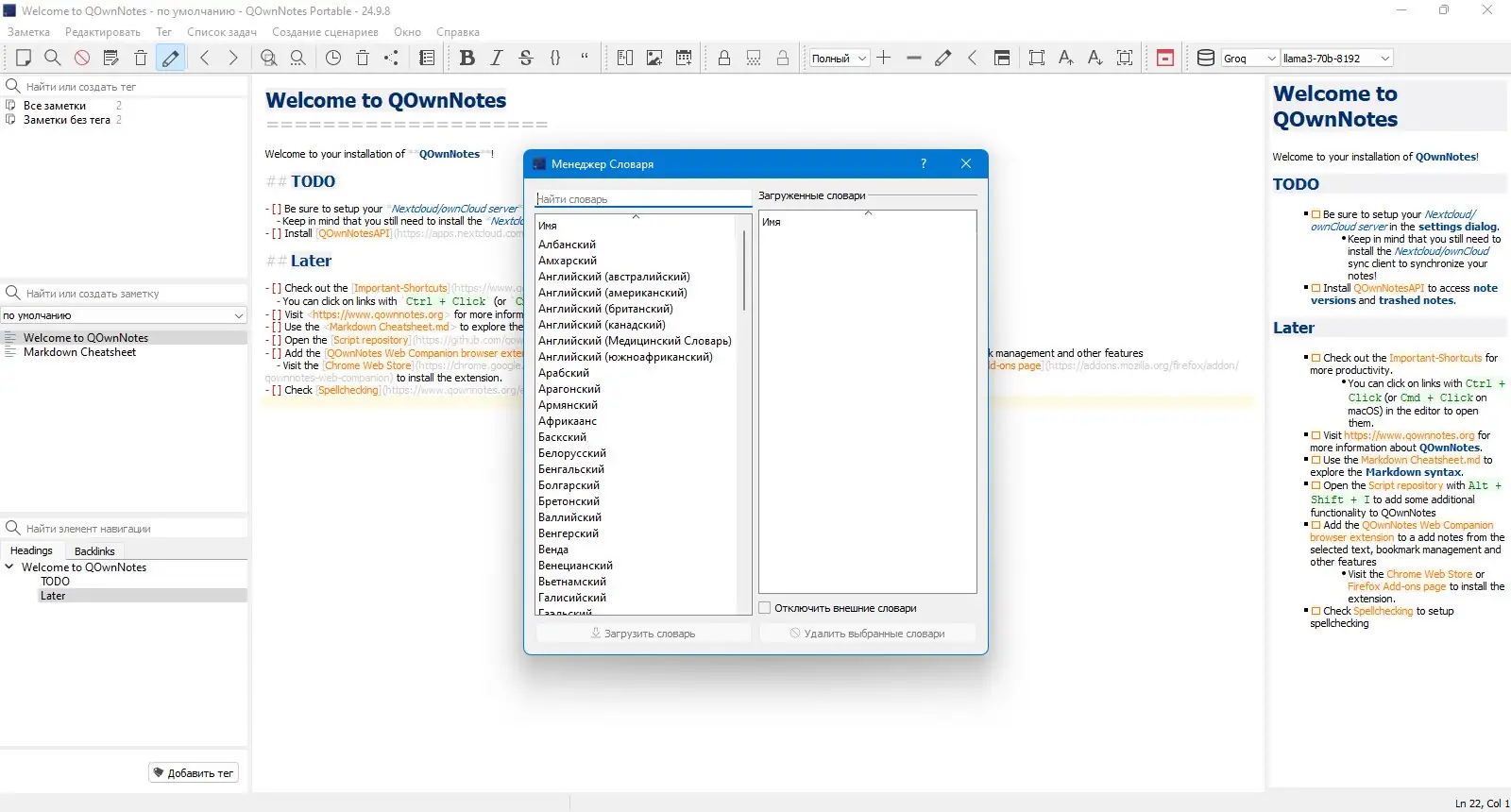 QOwnNotes предоставляет пользователям среду для создания, систематизации и управления заметками без привязки к закрытым форматам. Все записи сохраняются в виде простых текстовых файлов, что обеспечивает максимальную совместимость и долгосрочную доступность. Благодаря поддержке Markdown, можно легко форматировать текст: выделять заголовки, списки, цитаты и код без лишних усилий. Это делает приложение особенно полезным для тех, кто работает с технической документацией, ведёт личный дневник или планирует проекты.