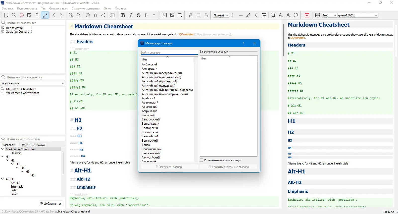 QOwnNotes — это бесплатный кроссплатформенный менеджер заметок с открытым исходным кодом, ориентированный на простоту, гибкость и удобство использования. Программа хранит записи в текстовых файлах с поддержкой разметки Markdown, обеспечивает синхронизацию через облачные сервисы и работает без установки. Подходит для тех, кто ценит автономность, прозрачность и контроль над своими данными.