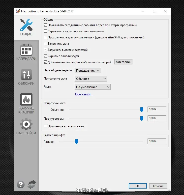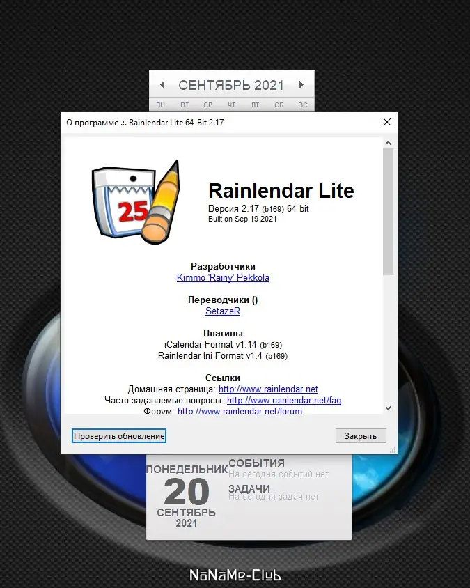 Описание Rainlendar