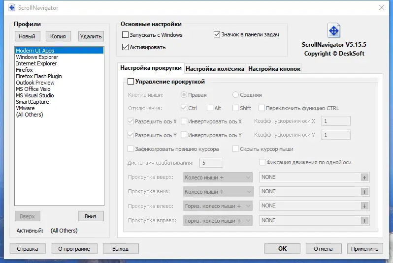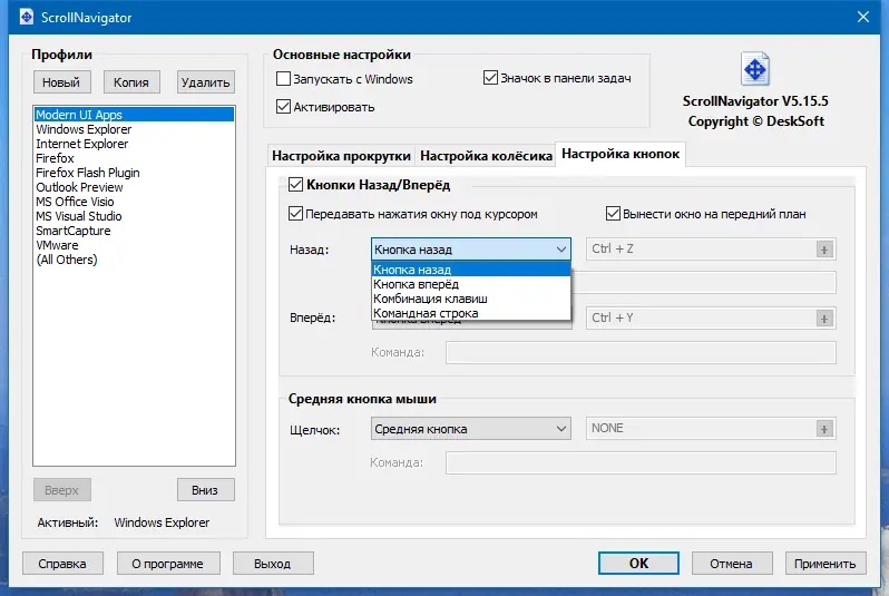 - Гибкая настройка поведения кнопок мыши