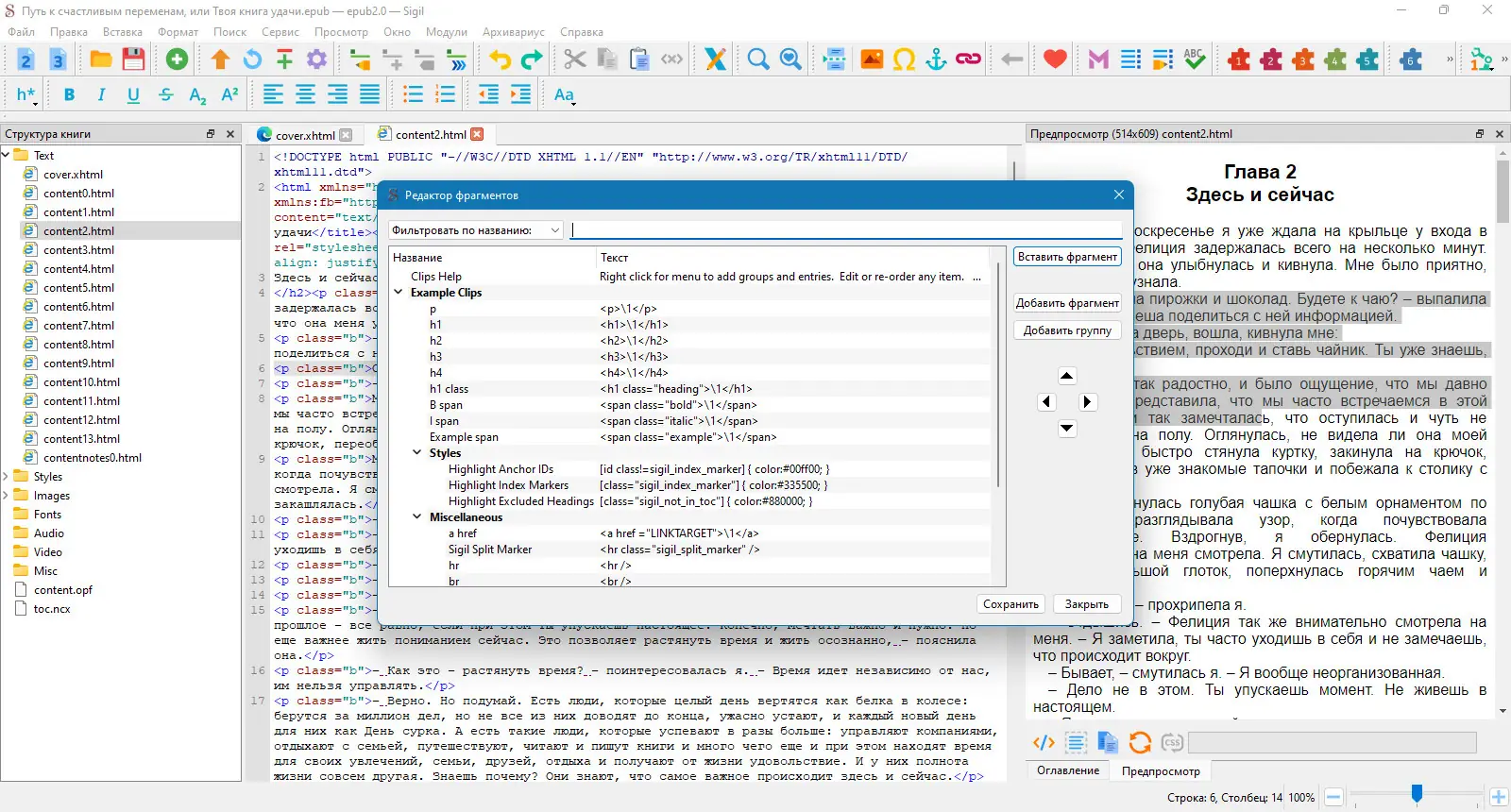 - Редактирование и создание книг в формате EPUB с поддержкой вложенности и сложной структуры