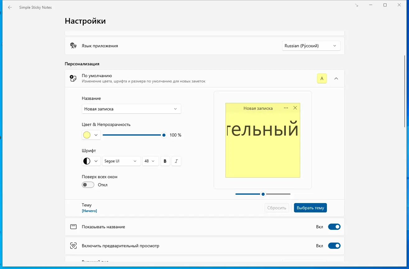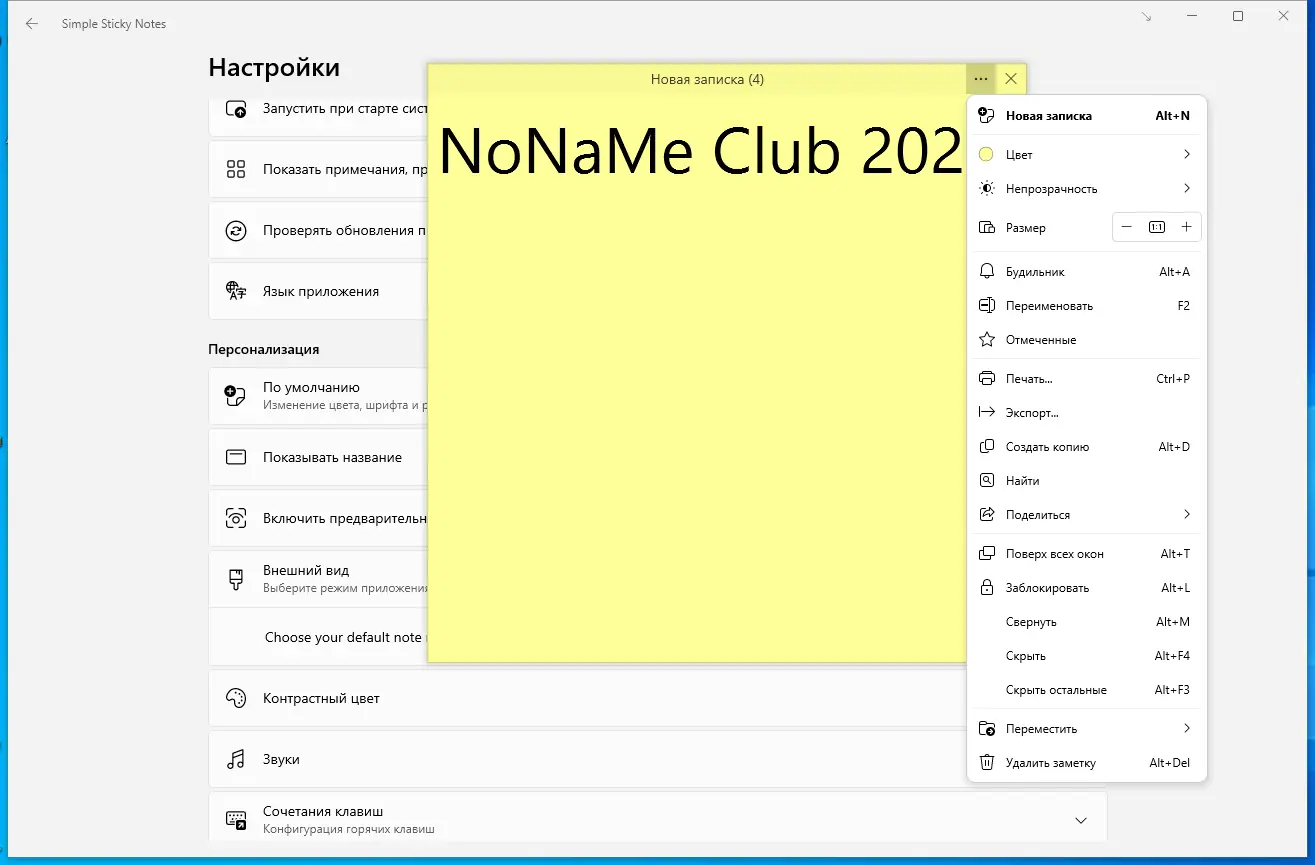 - Полная кастомизация заметок: цвет, шрифт, прозрачность, размер и поведение.