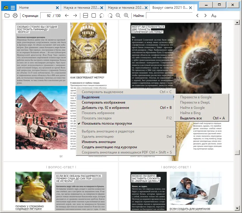 - Поддержка широкого спектра форматов, включая редкие, такие как DjVu и XPS.