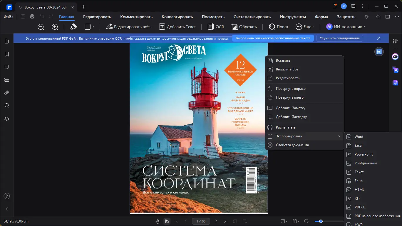 - Возможность конвертировать PDF в Word, Excel, изображения и другие форматы