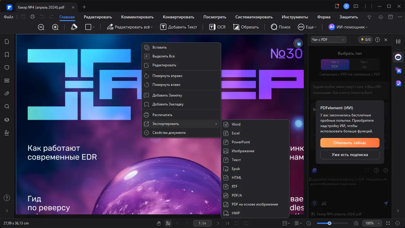 - Преобразование PDF в Word, Excel, изображения и другие популярные форматы без потери качества