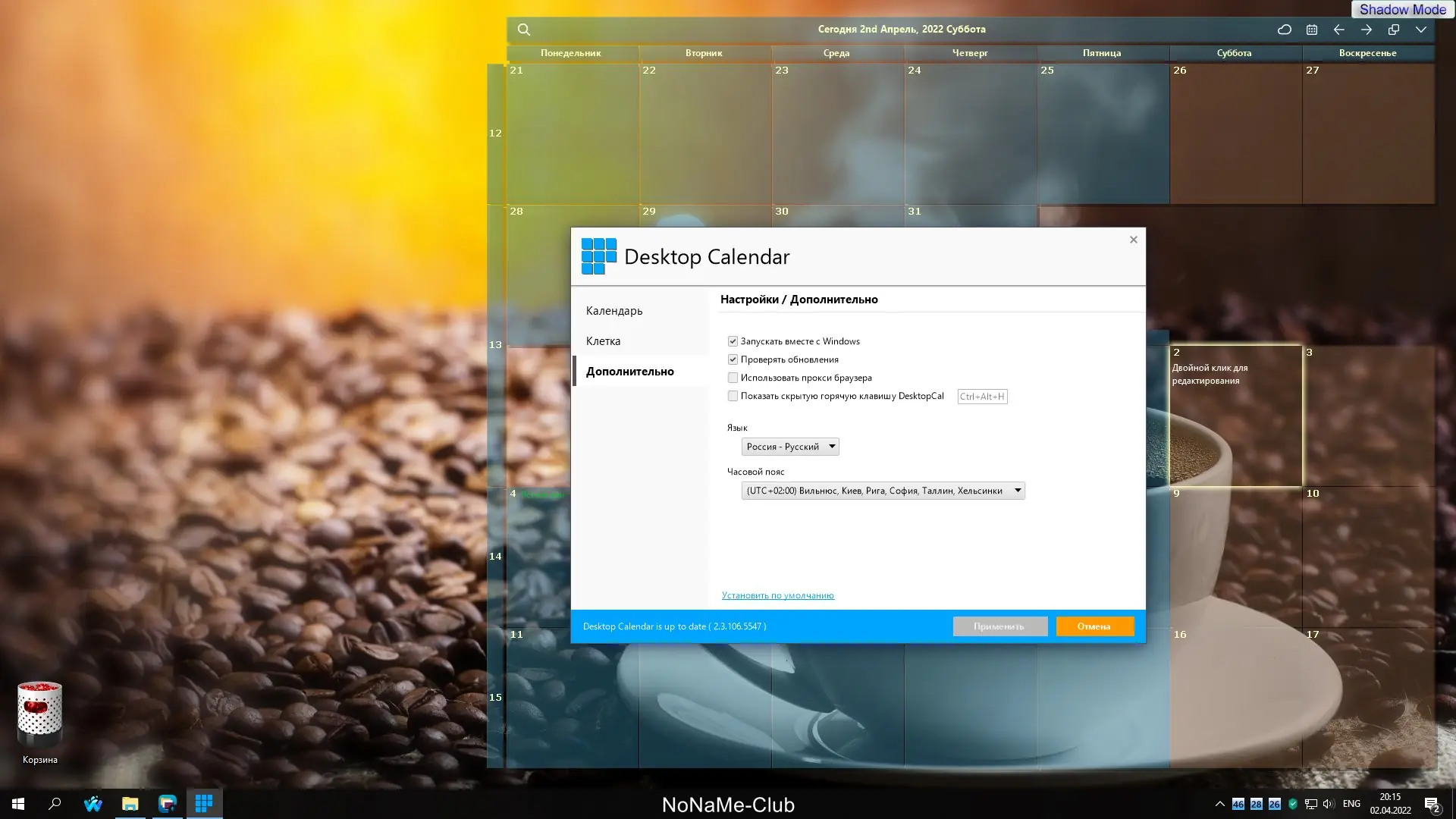 Управление приложением осуществляется с помощью мыши и простых жестов. Двойной щелчок по дате открывает окно редактирования, где можно добавить событие, задачу или заметку. Для фиксации важного напоминания на рабочем столе также используется двойной клик, что позволяет закрепить информацию на видном месте. Размер календаря настраивается перетаскиванием углов окна, что позволяет адаптировать его под любой экран. Настройки программы включают выбор языка, формата даты, цветовой схемы и параметров уведомлений. Пользователь может настроить уведомления о предстоящих событиях, а также включить автоматический запуск при старте системы.