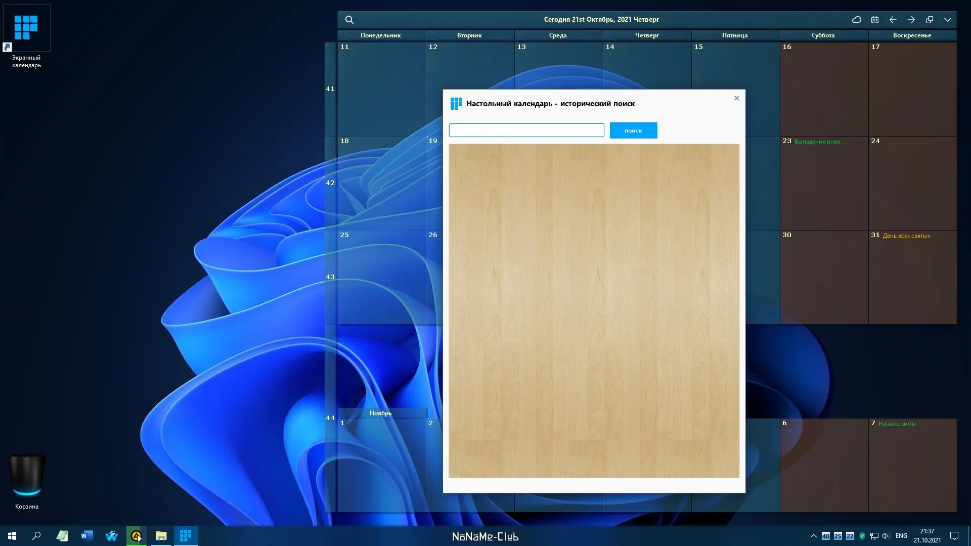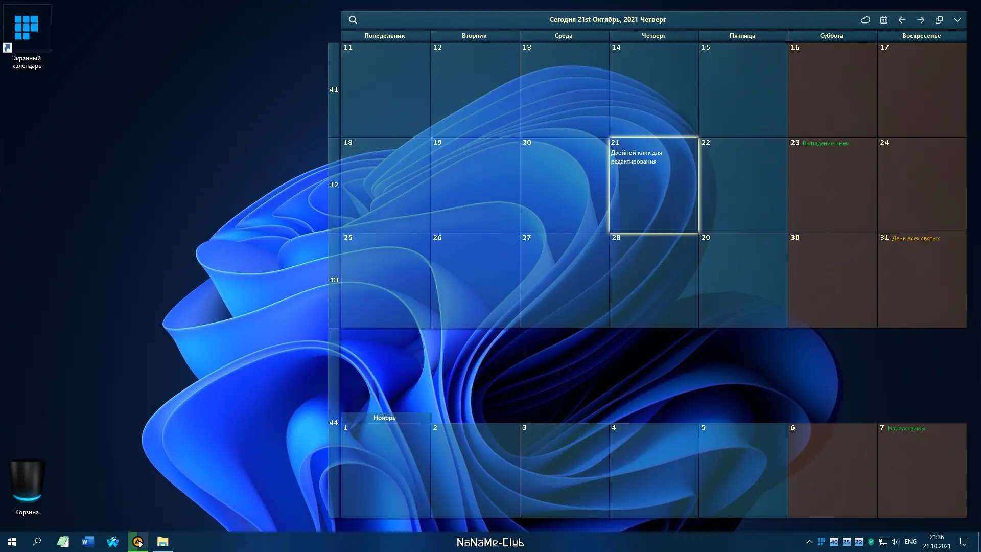 - Отображение календаря на рабочем столе без запуска дополнительных окон