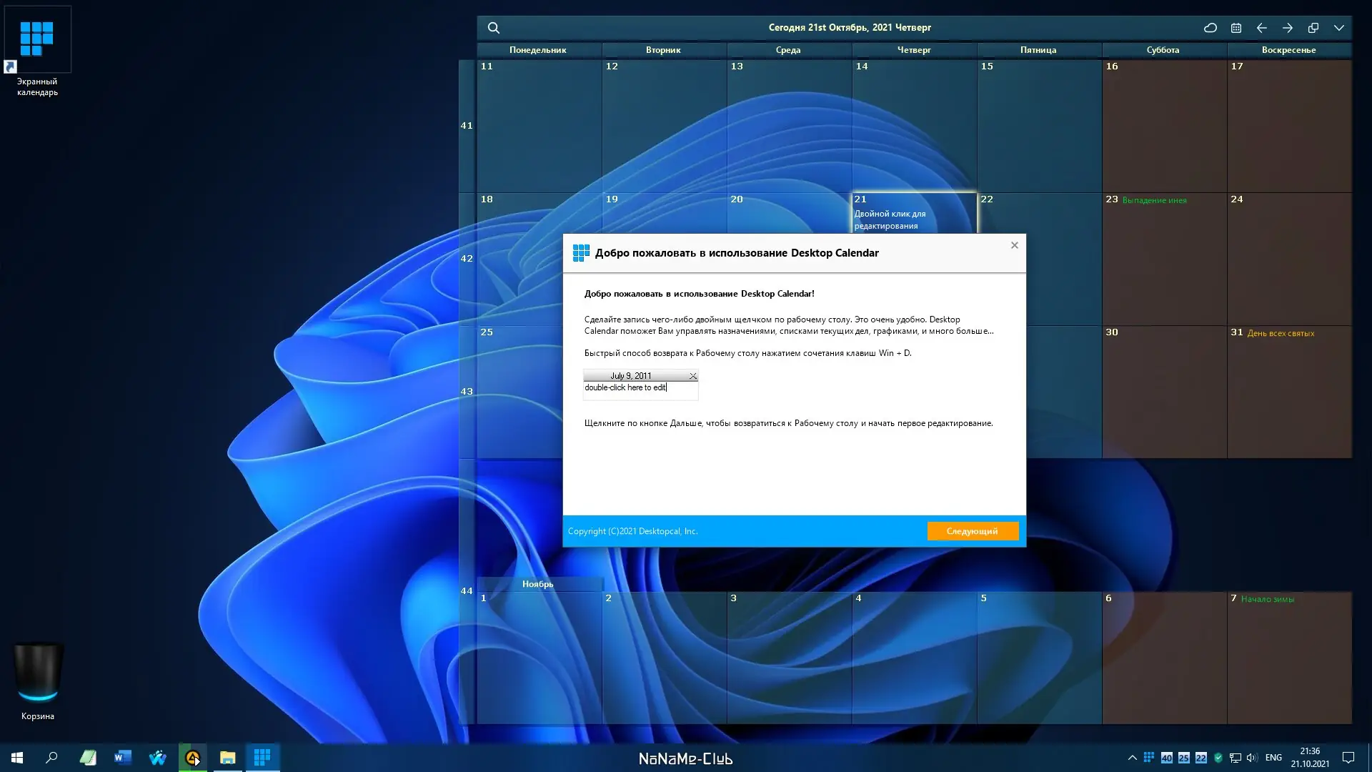 Desktop Calendar — бесплатное приложение для операционной системы Windows, которое превращает обычный календарь в функциональный инструмент планирования. Программа отображается прямо на рабочем столе, не перекрывая другие окна, и позволяет вести учёт дел, встреч, праздников и важных дат. Благодаря интуитивному интерфейсу и гибким настройкам, она подойдёт как для личного, так и для профессионального использования.