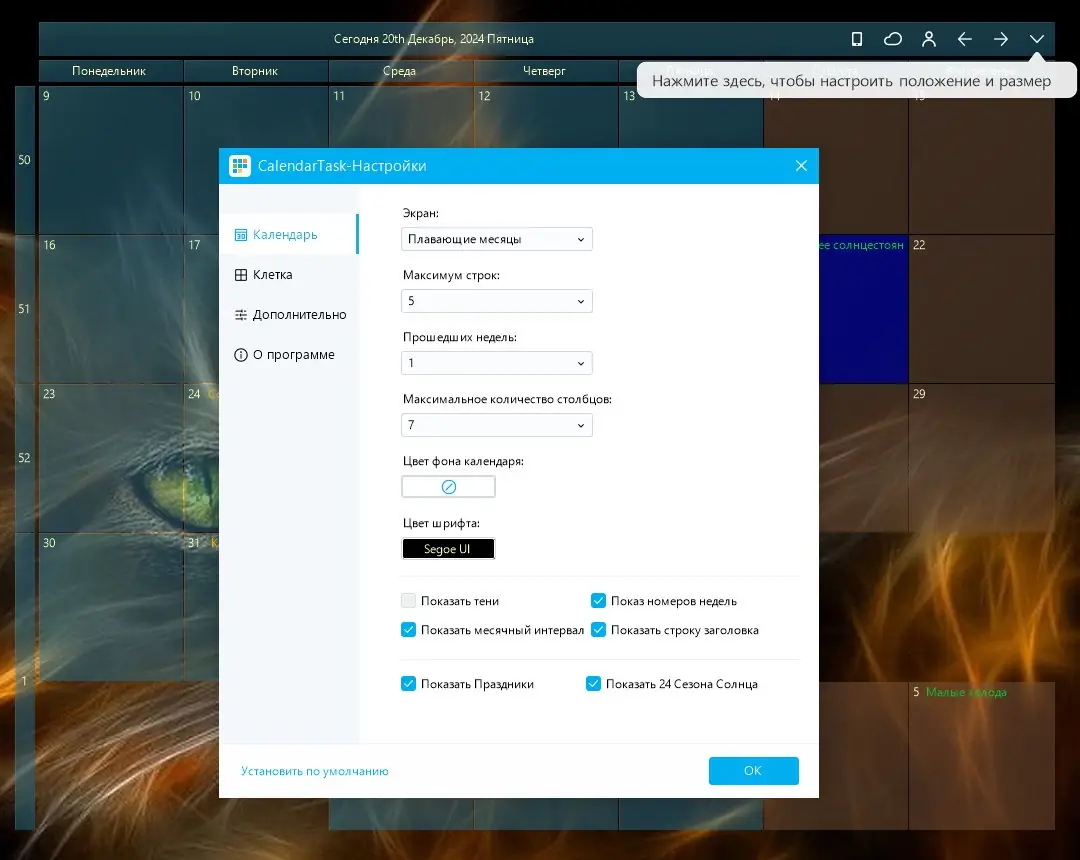 Как пользоваться Desktop Calendar