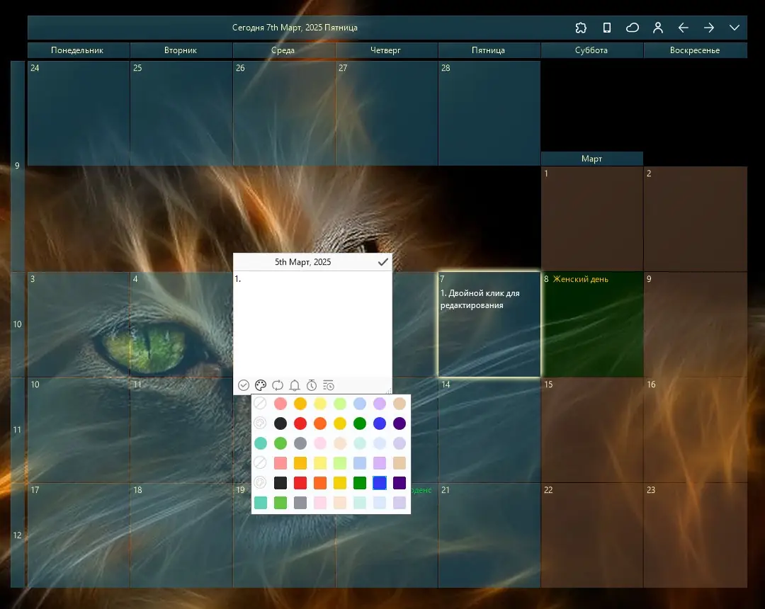 Desktop Calendar представляет собой компактное приложение, интегрируемое непосредственно в рабочее пространство пользователя. Разработчики реализовали гибкую систему визуализации событий, позволяя выделять важные дни с помощью цветовой маркировки. Каждый день может содержать список задач, напоминания, заметки и праздничные даты, что превращает программу в полноценный ежедневник. Утилита поддерживает синхронизацию данных, что особенно полезно при использовании нескольких устройств.
