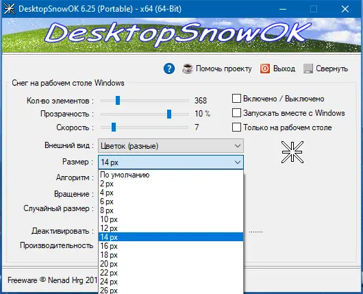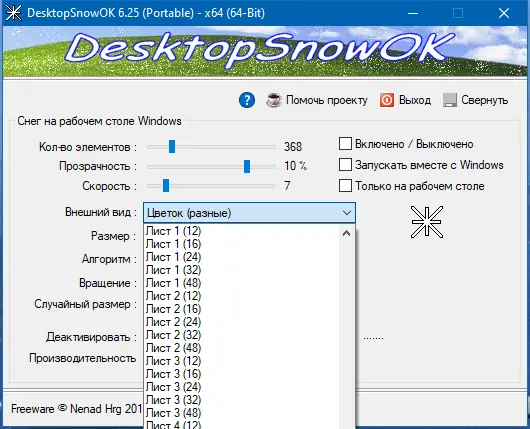 Как пользоваться DesktopSnowOK