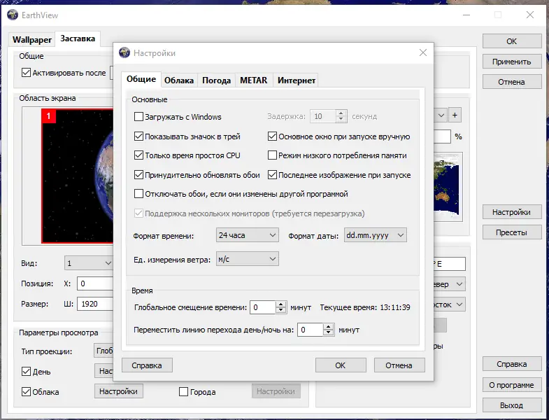 EarthView превращает рабочий стол в живое изображение планеты, отображая текущие условия освещения, облачность и температурные данные в реальном времени. Программа использует актуальные спутниковые снимки и метеорологические данные, что позволяет видеть настоящую картину происходящего на поверхности Земли. Поддержка нескольких проекций, включая картографические и глобусные, делает возможным выбор наиболее удобного способа визуализации. Глубокая интеграция с интернет-источниками данных позволяет отображать изменения в атмосфере, сезонные колебания растительности и передвижение облаков. Программа адаптируется под любое разрешение экрана, включая 4K и выше, обеспечивая чёткость и насыщенность цветов даже при максимальном масштабировании.