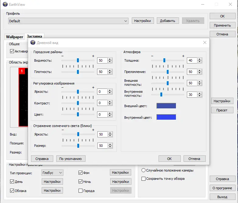 EarthView — динамические обои и хранитель экрана, демонстрирующие Землю в высоком разрешении с реалистичной сменой дня и ночи, атмосферными эффектами, облаками и данными о погоде. Программа поддерживает множество проекций, сезонные изменения ландшафта и работу на нескольких мониторах. Благодаря высокодетализированным картам и гибкой настройке, EarthView превращает рабочий стол в живое изображение планеты.