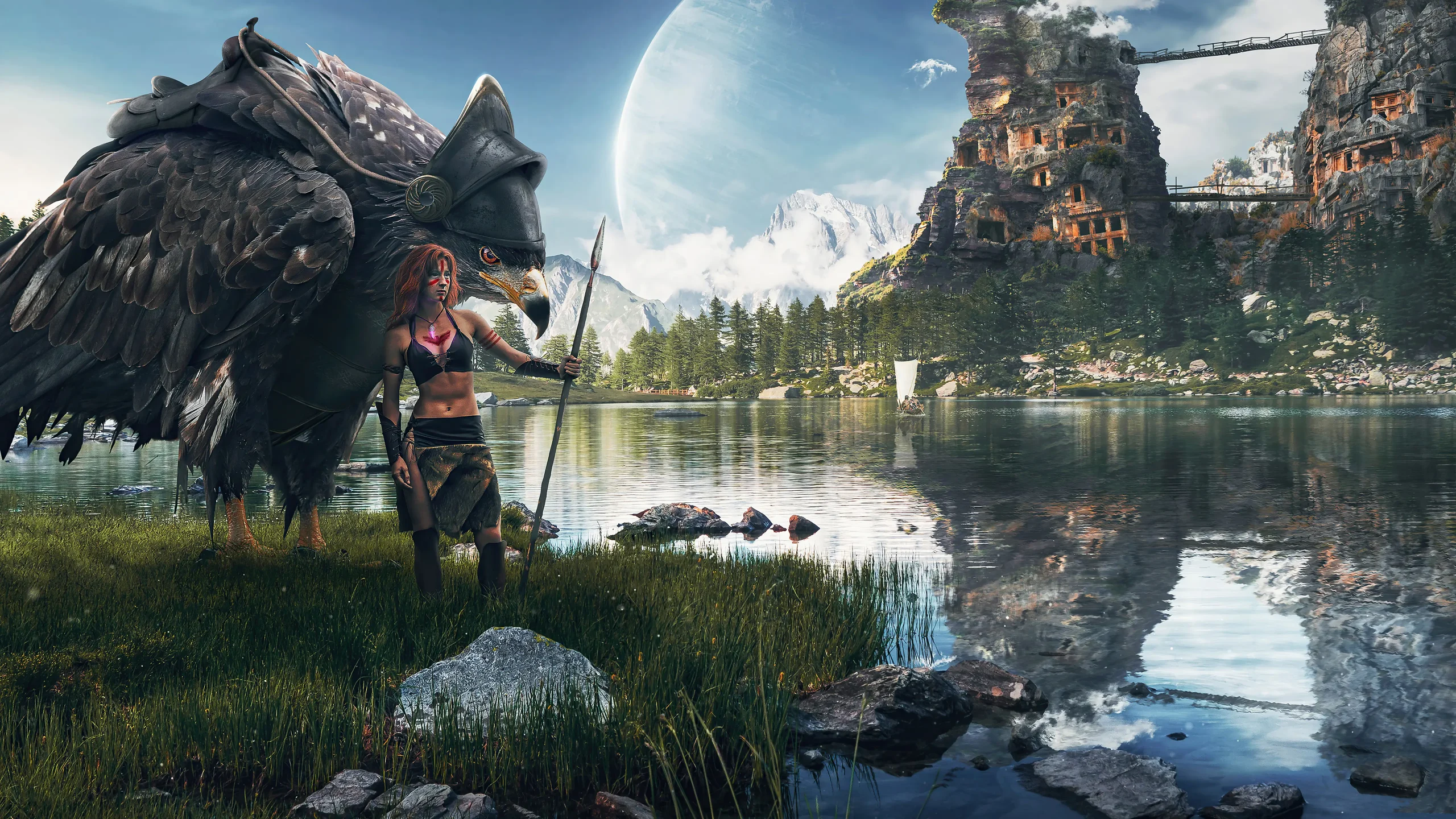 - Наличие живые элементов композиции, таких как природные явления, динамичные позы моделей и эффекты освещения, придаёт обоям выразительность.