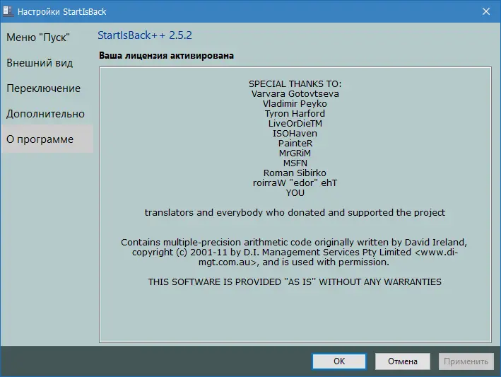 - Восстанавливает классическое меню «Пуск» с привычной структурой и поведением