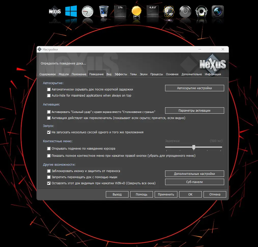 - Автоматическое скрытие док-панели при необходимости освободить экранное пространство.