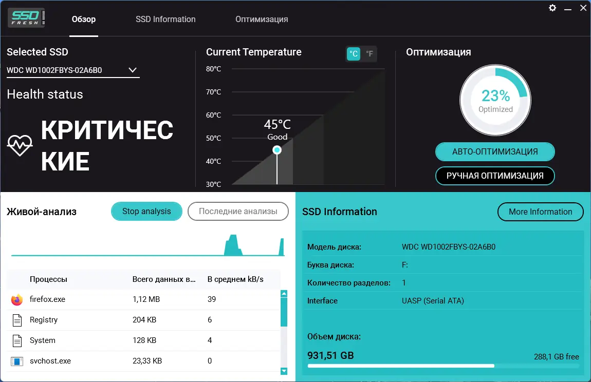 Программа не только повышает производительность, но и помогает контролировать состояние SSD на системном уровне.