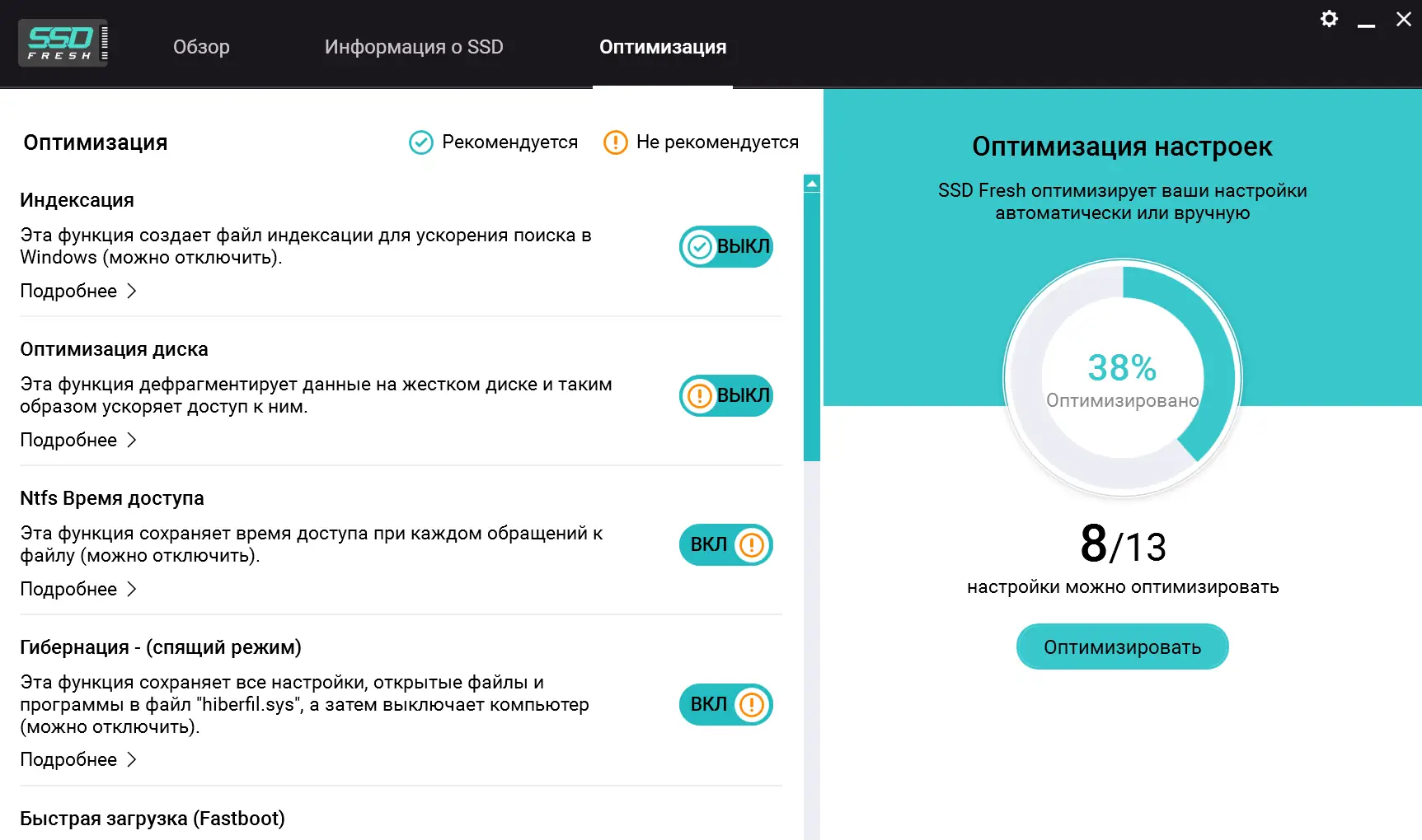 - Автоматизированная оптимизация под SSD без необходимости ручного вмешательства в реестр.