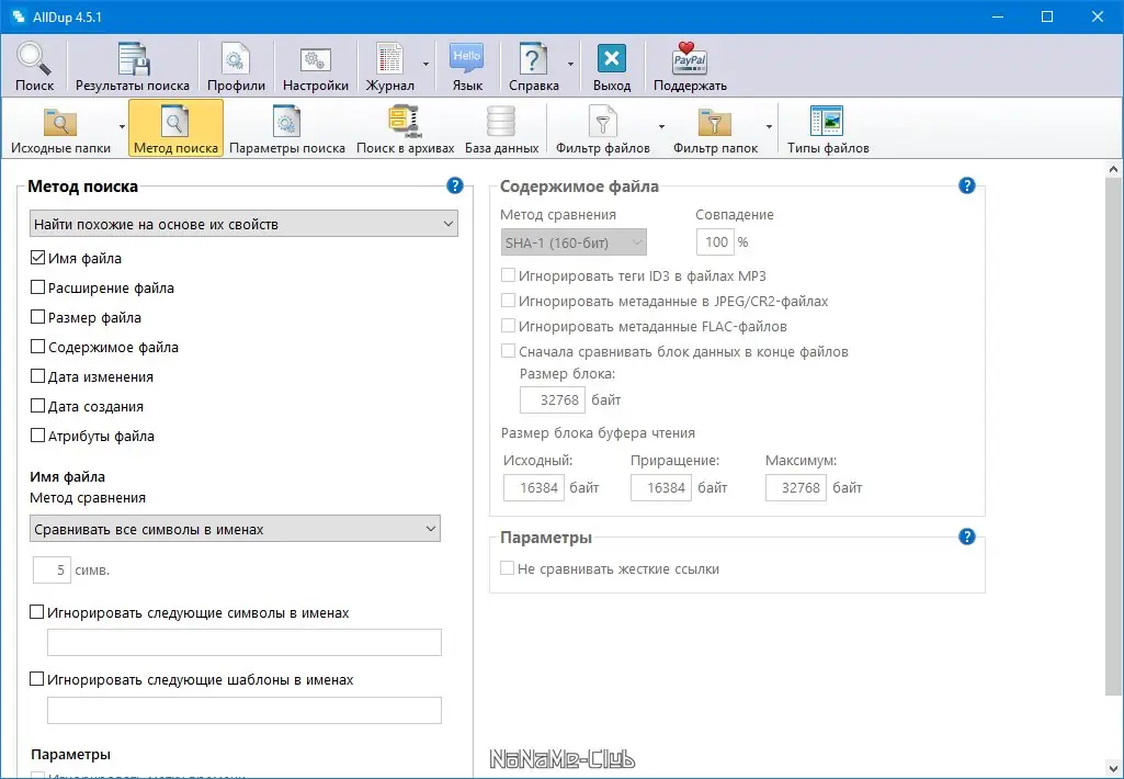 Интерфейс AllDup интуитивно понятен и не требует глубоких технических знаний. После запуска достаточно указать папки или диски, которые нужно проанализировать, и выбрать критерии поиска — например, полное совпадение содержимого или схожесть по имени и расширению. Для музыкальных файлов доступна опция игнорирования ID3-тегов, что позволяет находить дубликаты по аудиоданным, а не по метаинформации.
