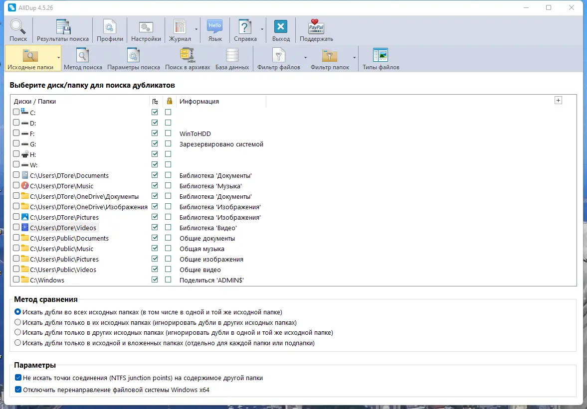 AllDup — это мощное решение для поиска дубликатов файлов на жёстких дисках, позволяющее эффективно освобождать дисковое пространство и устранять дублирующиеся копии. Программа анализирует данные по множеству параметров, включая содержимое, имя, расширение, размер и даты создания файлов. С её помощью можно быстро обнаружить и как удалить дубликаты файлов, не затрачивая лишнего времени на ручной поиск.
