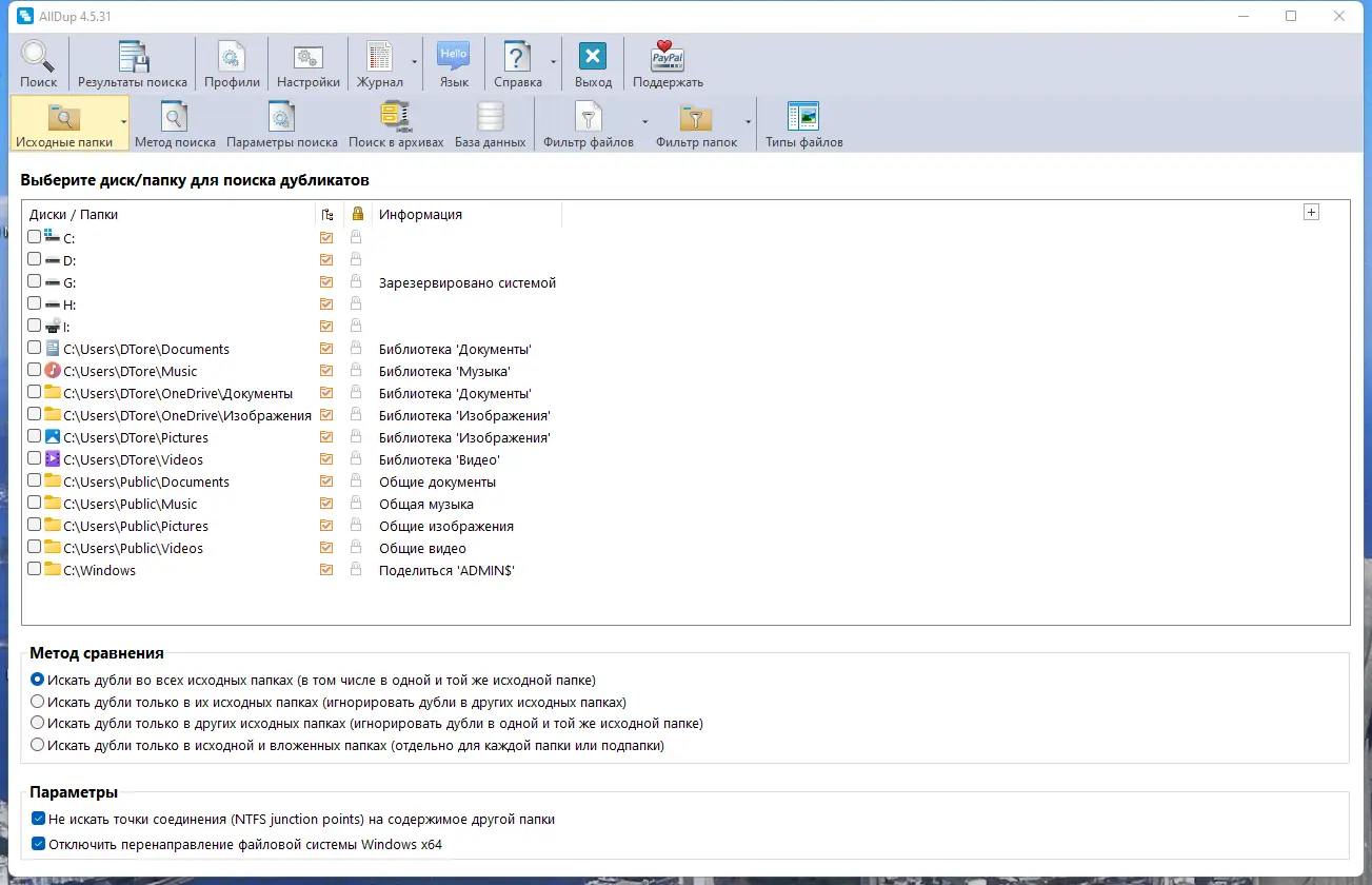 Интерфейс AllDup интуитивно понятен, что упрощает процесс поиска дубликатов даже для новичков. Для начала работы достаточно указать папки или диски, которые нужно проанализировать, и выбрать критерии поиска. После завершения сканирования программа отображает все найденные совпадения в виде структурированного списка, где можно сравнить файлы по различным параметрам и принять решение о дальнейших действиях.