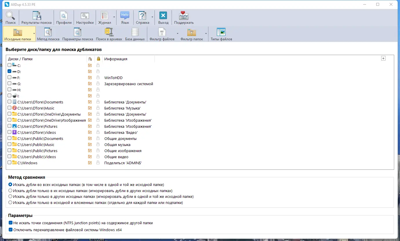 Интерфейс AllDup интуитивно понятен и не требует глубоких технических знаний. После запуска необходимо указать каталоги или диски, подлежащие анализу, и выбрать критерии сравнения — можно использовать один или несколько параметров одновременно. Запустив сканирование, пользователь наблюдает за процессом в реальном времени, а по завершению получает структурированный список всех найденных совпадений, сгруппированных по папкам и типам файлов.