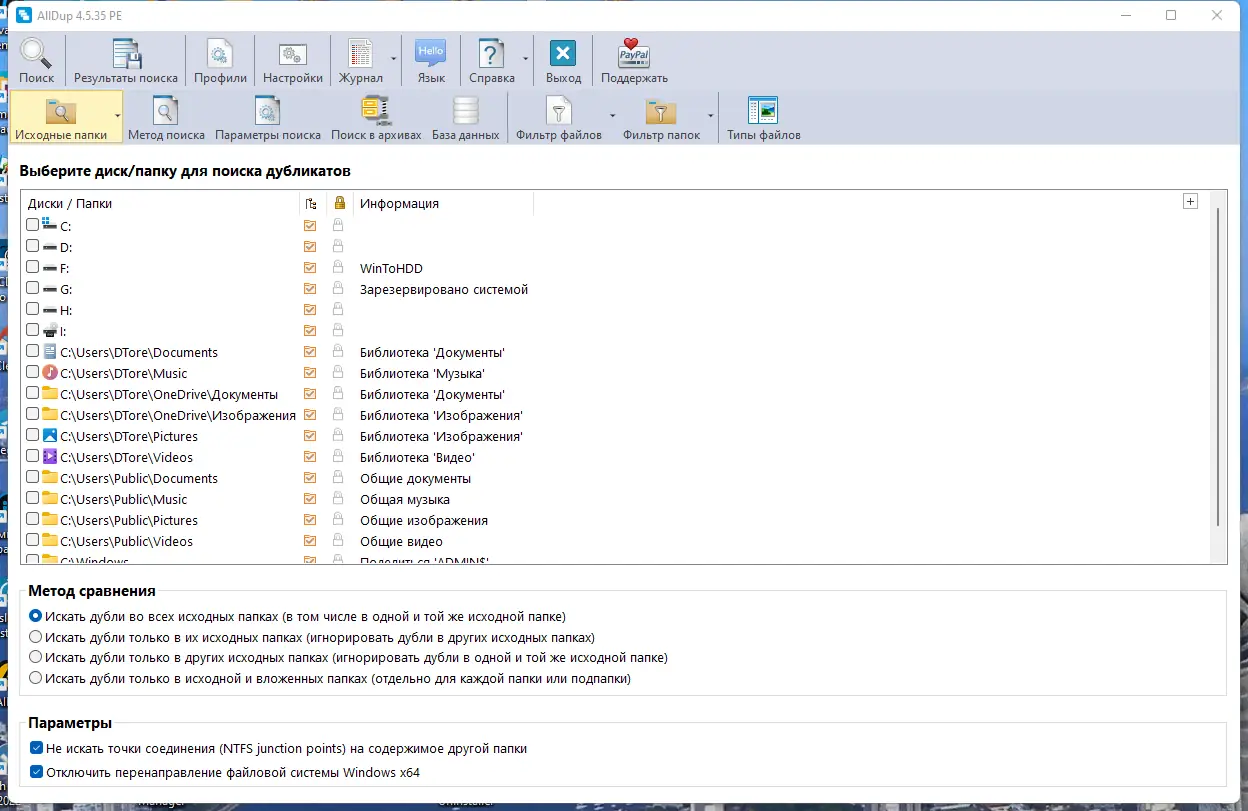 AllDup — это мощное приложение для поиска и удаления дублирующихся файлов на жёстких дисках компьютера. Программа эффективно сканирует выбранные разделы, папки и накопители, выявляя повторяющиеся файлы по множеству параметров, включая имя, размер, содержимое и даты создания. С её помощью можно быстро освободить место на диске и привести файловую систему в порядок, избавившись от ненужных копий.
