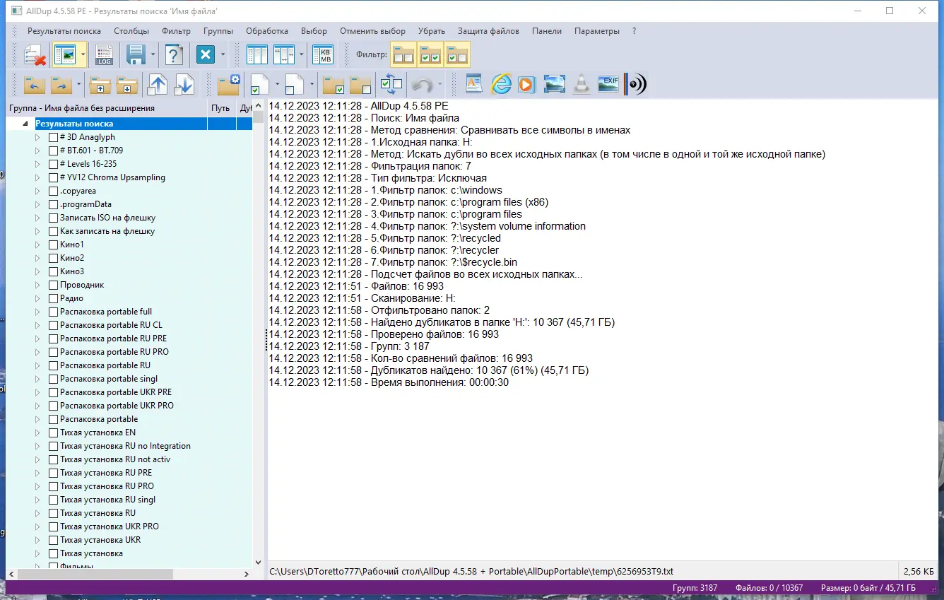 AllDup — это мощное решение для поиска дубликатов файлов на жёстких дисках, позволяющее эффективно освобождать место и упорядочивать данные. Программа анализирует файлы по множеству параметров, включая имя, размер, содержимое и дату изменения, обеспечивая точное обнаружение повторяющихся элементов. Поддержка различных форматов делает её универсальным инструментом для очистки системных и пользовательских папок.