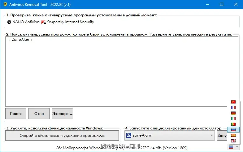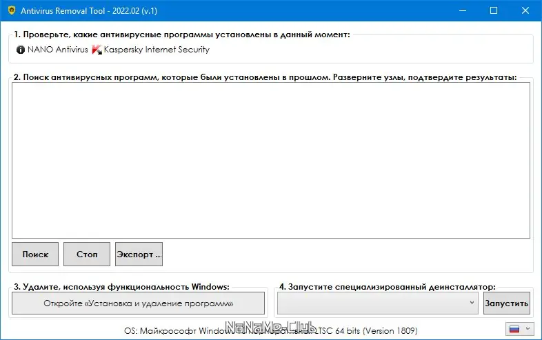 Описание Antivirus Removal Tool