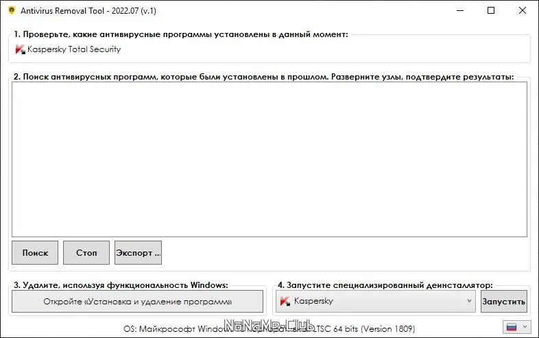 - Инструмент не предназначен для установки антивирусов, только для их удаления.