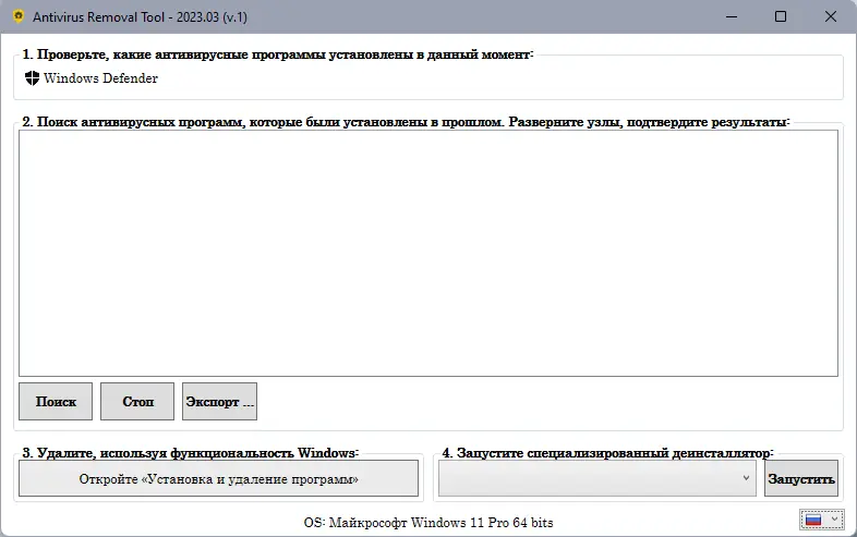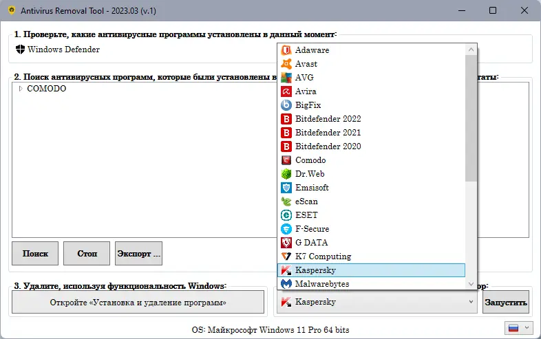 - Автоматическое распознавание установленного антивируса для быстрого запуска нужной утилиты.