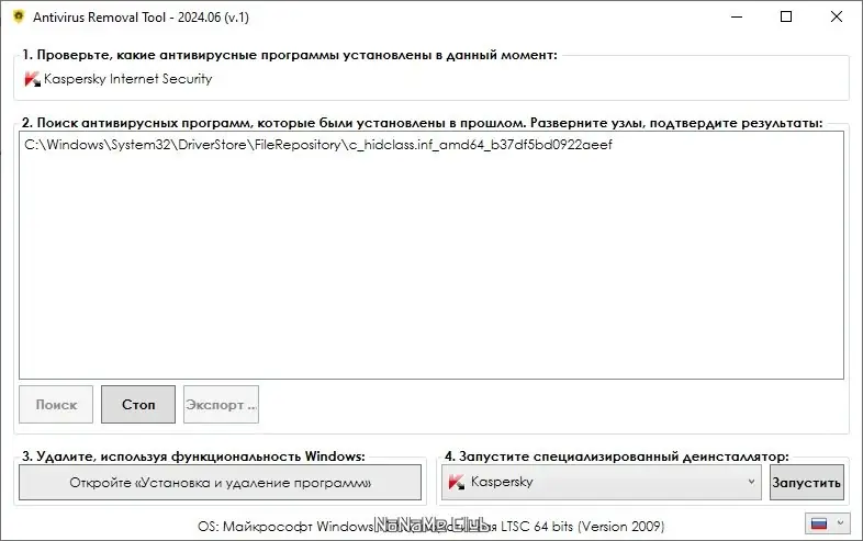 - Поддержка официальных средств удаления, включая утилиту от kaspersky
