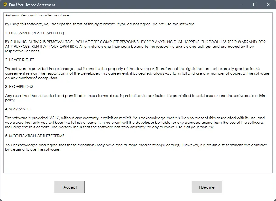 - Ограниченная функциональность вне контекста удаления антивирусов.