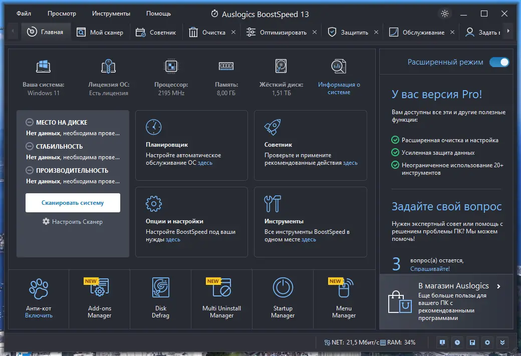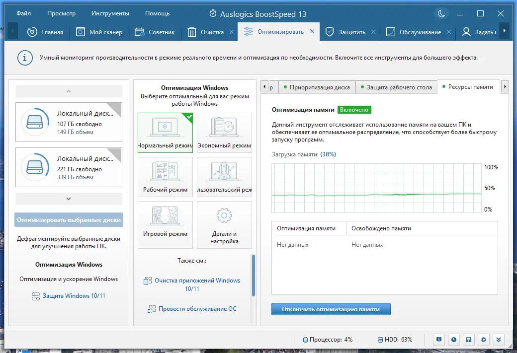 Auslogics BoostSpeed — это мощный инструмент для комплексной оптимизации операционной системы Windows, который помогает ускорить работу компьютера, очистить реестр и диски от мусора, устранить ошибки и настроить систему под индивидуальные потребности пользователя. Программа объединяет в себе десятки утилит, отвечающих за производительность, безопасность и стабильность. С её помощью можно легко освободить место на жёстком диске, ускорить запуск системы и повысить отзывчивость приложений.