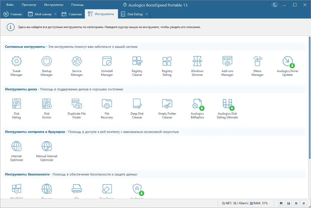 Auslogics BoostSpeed — комплексный инструмент для тонкой настройки и ускорения работы операционной системы Windows. Программа объединяет в себе десятки утилит, направленных на очистку системы, дефрагментацию дисков и реестра, восстановление удалённых файлов, оптимизацию интернет-соединения и управление автозагрузкой. Благодаря интуитивному интерфейсу и широкому функционалу, она подходит как новичкам, так и продвинутым пользователям, стремящимся повысить стабильность и производительность своего ПК.