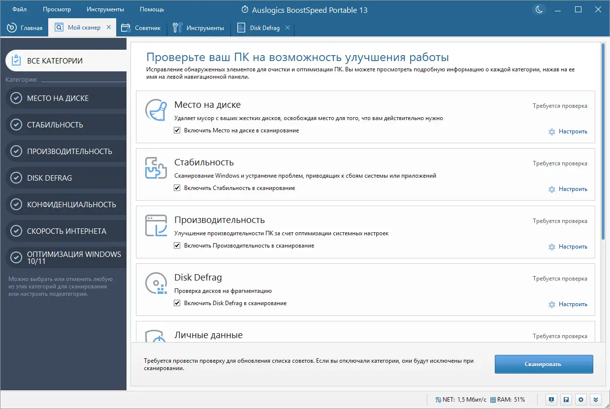 Auslogics BoostSpeed представляет собой мощный твикер, ориентированный на всестороннюю оптимизацию системы. Он включает в себя модули для очистки дисков от временных и ненужных файлов, анализа и дефрагментации реестра, а также инструменты для восстановления данных после случайного удаления. Программа помогает устранить ошибки файловой системы, находящиеся на физических носителях, и эффективно управлять загрузкой системы, освобождая ресурсы для более быстрой работы. С её помощью можно легко контролировать использование дискового пространства, находя и удаляя дубликаты файлов или освобождая место от крупных, давно неиспользуемых данных.