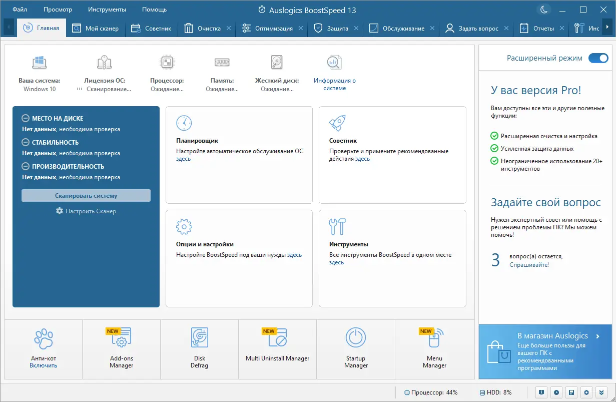 Auslogics BoostSpeed — это многофункциональный инструмент для комплексной оптимизации операционной системы Windows, позволяющий ускорить работу компьютера, очистить систему от мусора, устранить ошибки реестра и настроить параметры производительности под индивидуальные потребности пользователя. Программа объединяет в себе десятки утилит, охватывающих все ключевые аспекты обслуживания ПК: от дефрагментации дисков до управления автозагрузкой. Благодаря интуитивному интерфейсу и автоматизированным режимам, даже новичок сможет эффективно использовать её возможности.